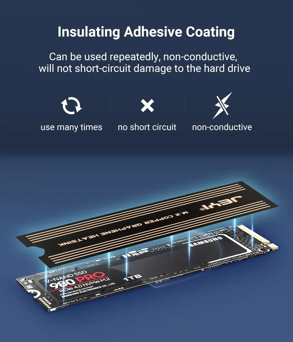 JEYI M.2 SSD Disipador de calor de lámina de cobre grafeno